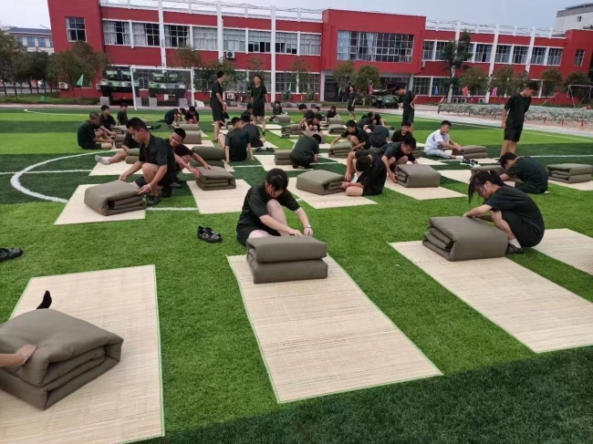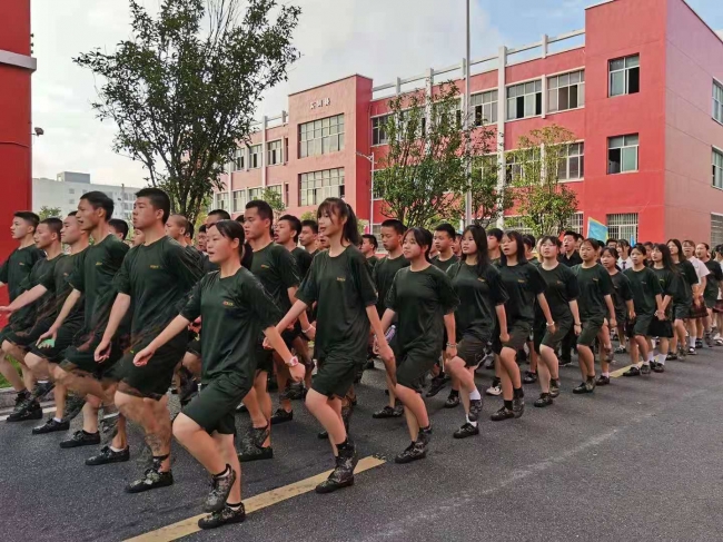 中午和晚上吃飯時間,學(xué)生都會以班級為單位列隊(duì)前進(jìn),并一路高歌。在軍事課堂,教官帶領(lǐng)學(xué)生學(xué)習(xí)軍事化理論和軍事實(shí)踐課程。在操場上,教官會教授學(xué)生如何折疊豆腐狀的被子、走列隊(duì)和練軍體拳等。