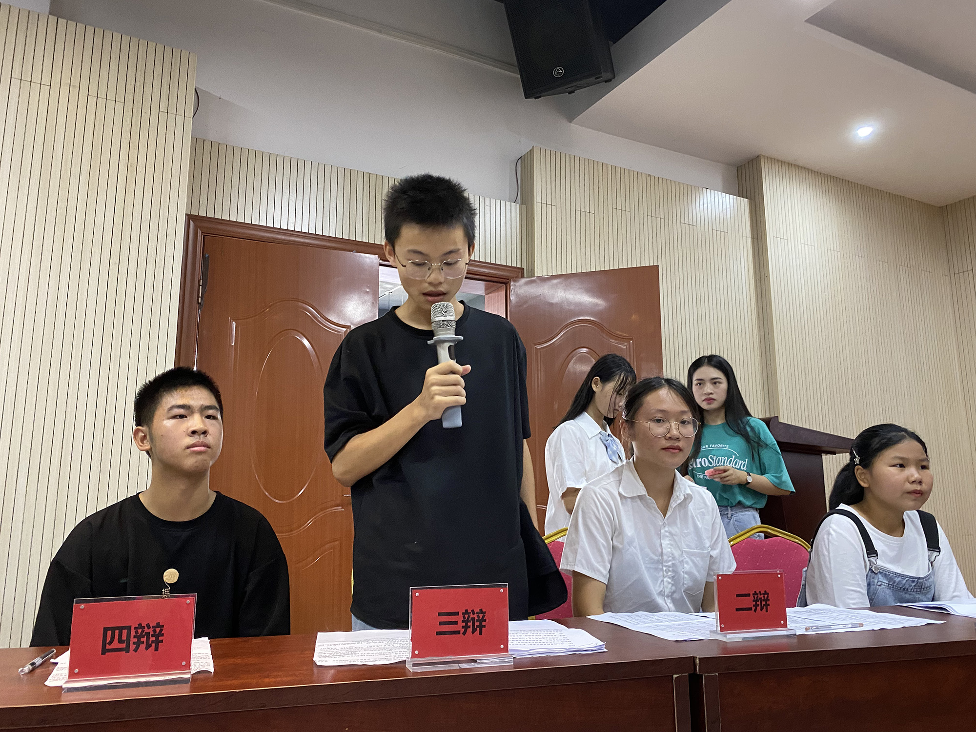 6月30日上午,我校首屆學生辯論賽舉行了決賽,正方代表隊3班獲得冠軍,反方代表隊2班獲得亞軍。3班的三辯李斌獲得最佳辯手的稱號。校長助理、校辦公室主任彭福華,教務處干事侯小花,學工處干事鄧蓓擔任評委。