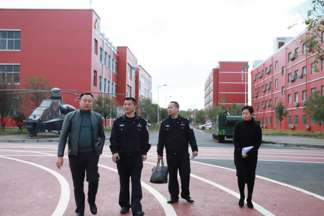 ????日前,吉安市公安局副局長姜斌、吉安市公安局井岡山經(jīng)濟(jì)技術(shù)開發(fā)區(qū)分局局長伍有君等一行蒞臨我校視察指導(dǎo)工作,就學(xué)校安全保衛(wèi)、學(xué)生生活起居等工作進(jìn)行了實(shí)地調(diào)查。副校長陳俊民等校領(lǐng)導(dǎo)陪同。