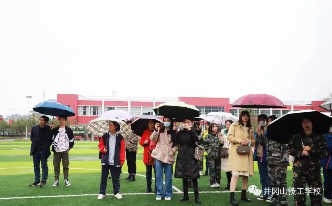 ????師生及家長(zhǎng)一行在校接待老師的帶領(lǐng)下,參觀了我校黨建大廳、運(yùn)動(dòng)場(chǎng)、實(shí)訓(xùn)室、食堂和宿舍等,并冒雨觀看了學(xué)生隊(duì)列表演。學(xué)生隊(duì)列動(dòng)作整齊劃一、口號(hào)嘹亮,為這一絲寒意的早冬增添了些許暖意,參觀的師生及家長(zhǎng)紛紛為學(xué)生點(diǎn)贊。