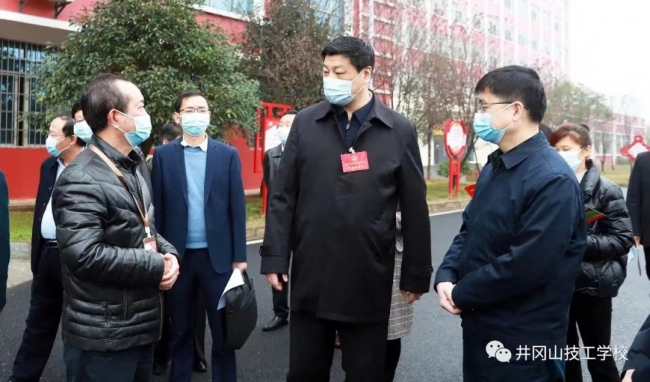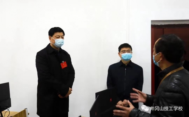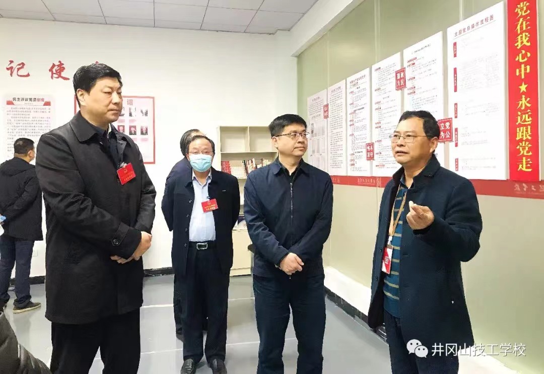 ????廖宏一行參觀了校園,視察了校黨建大廳、黨員活動室、實訓(xùn)室和第一食堂等教學(xué)、生活場地,興致勃勃察看了學(xué)生室外上課情況。視察過程中,學(xué)校主要領(lǐng)導(dǎo)代表學(xué)校對廖宏一行的到來表示熱烈歡迎,感謝各級黨委政府和人大代表,以及社會各級長期以來對學(xué)校的關(guān)心與支持。他并就學(xué)校辦學(xué)基本情況、學(xué)生教育工作情況進(jìn)行了簡要匯報,代表學(xué)校向人大代表提出了三點訴求:一是根據(jù)扶強(qiáng)原則,希望明確學(xué)校進(jìn)入吉安市“1+3+N”職業(yè)教育體系;二是根據(jù)“提質(zhì)創(chuàng)優(yōu)”原則,對吉安市井岡山技工學(xué)校給予生源支持;三是按照產(chǎn)教深度融合的發(fā)展思路,希望進(jìn)一步促進(jìn)校企合作項目落實落地。