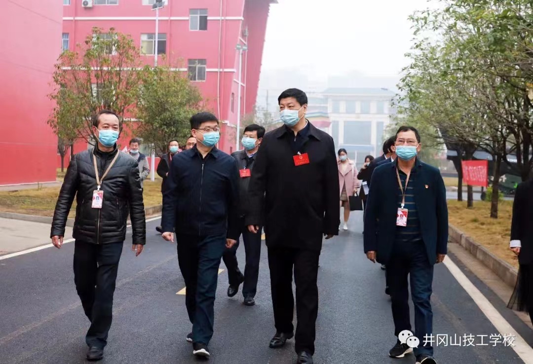 ????12月16日上午,吉安市人大常委會主任廖宏來我校視察,部分國家、省、市人大代表一同視察。吉安市人民政府副市長、井岡山經(jīng)開區(qū)管委會主任陳慶壽,井岡山經(jīng)開區(qū)黨工委副書記甘益烽等陪同。受東能集團(tuán)董事長謝偉林和執(zhí)行校長黃金根委托,副校長肖孟澤、陳俊民等向人大代表匯報了學(xué)校的基本情況。
