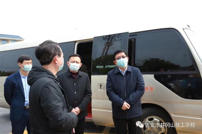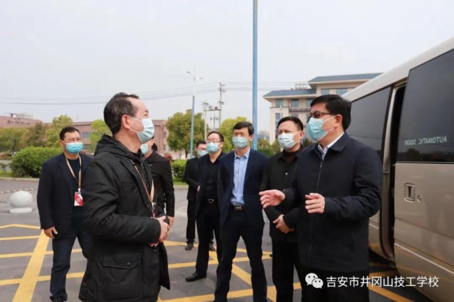 ????3月24日上午,吉安市人民政府一級巡視員鄧淑斌一行蒞臨我校檢查指導(dǎo)校園疫情防控工作,井岡山經(jīng)濟(jì)技術(shù)開發(fā)區(qū)黨工委副書記黃國棟等陪同。