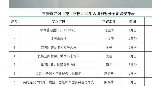 學(xué)校2022年入團(tuán)積極分子團(tuán)課安排
