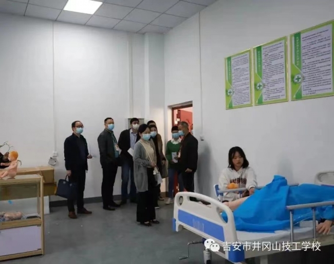 ????2022年4月20日上午,吉安市人社局副局長傅衛(wèi)紅率領(lǐng)專家組來我校考察新專業(yè)申報情況,執(zhí)行校長黃金根等校領(lǐng)導(dǎo)及相關(guān)專業(yè)老師陪同。