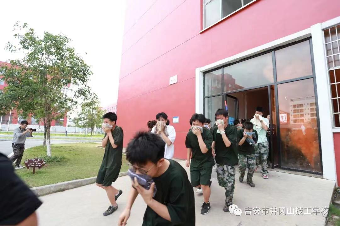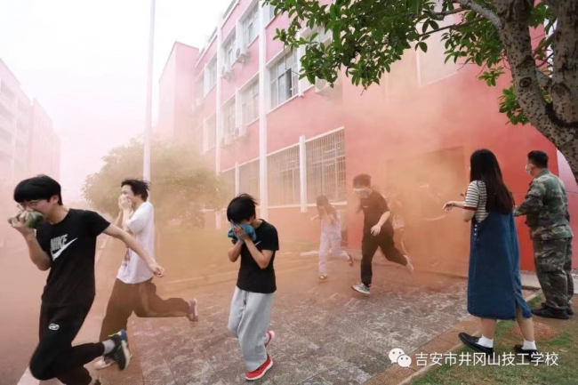 ????隨著消防警報(bào)聲響,同學(xué)們緊張有序地捂著口鼻俯身跑出教室,每個(gè)出口都安排了教官引導(dǎo)疏散。全體師生迅速疏散到操場(chǎng)后,井岡山經(jīng)開區(qū)消防救援大隊(duì)的李指導(dǎo)員為師生現(xiàn)場(chǎng)講解了消防知識(shí),演示了滅火器的使用方法,同學(xué)們踴躍參與,按照“一提二拔三壓四噴”的規(guī)范操作進(jìn)行滅火。