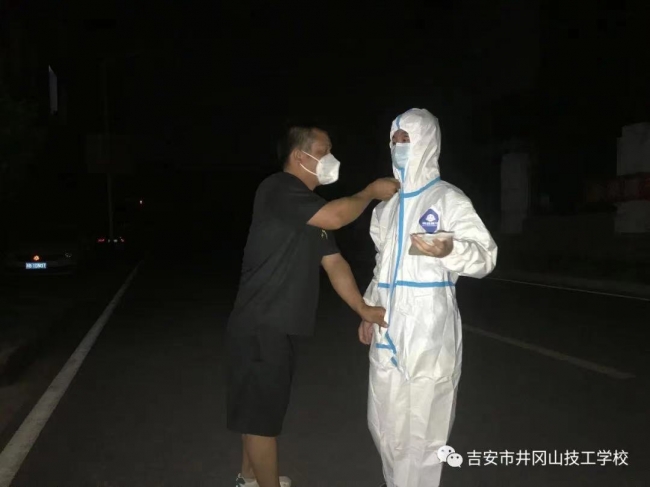 ????他是遂川老楊,一位退役多年的邊防老兵。同時,他也是學生們最信任、最敬愛的好教官。多年的部隊經(jīng)歷把為人民服務這句話刻進了老楊的骨血中,而他也一直在踐行著這句話。沖鋒在前,走在抗疫第一線。防護服下,老楊用腳步丈量校園;舉起手臂,學生們在老楊的關懷中成長。那天夜里,一個學生不慎在陽臺滑倒,需要去醫(yī)院縫針。他迅速和校辦公室溝通,聯(lián)系好醫(yī)院,給孩子做好防護措施,等待著護送學生安全就醫(yī)。疫情要求,醫(yī)院只能接受一人陪同,即使司機已經(jīng)到了,他還是忍不住拉著孩子,一遍遍叮囑著進醫(yī)院的流程,不厭其煩。學生說害怕自己不夠錢付醫(yī)藥費,老楊大手一揮:“先縫針!醫(yī)生說了多少錢就打電話給我,我轉(zhuǎn)給你!”葆有一顆仁愛之心,師者就要心中裝著學生,對學生充滿關懷,讓教育更有溫度。這也是為什么,更多家長愿意將孩子放心交給學校,交給這樣盡責的教官。