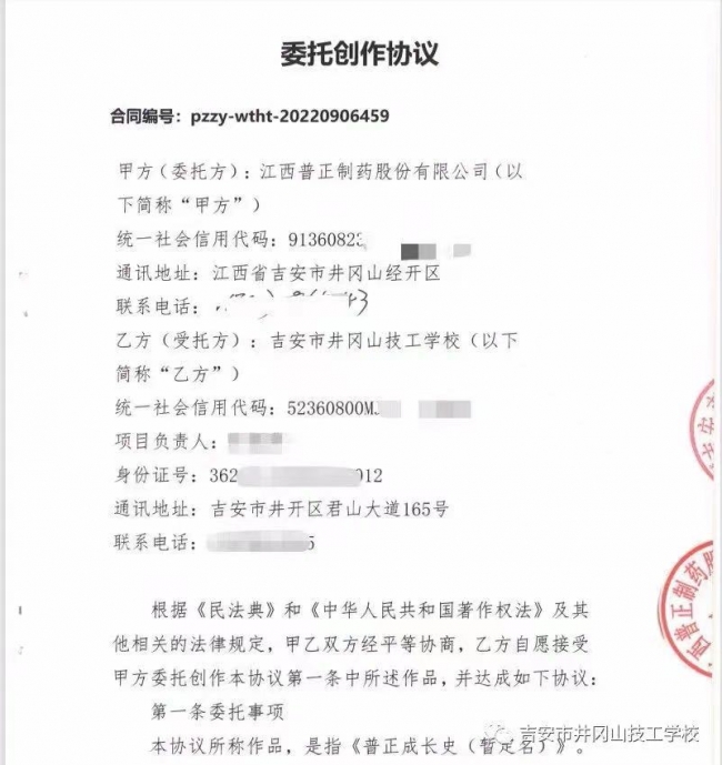 ????日前,江西普正制藥股份有限公司與學(xué)校簽訂《委托創(chuàng)作協(xié)議》,普正制藥委托學(xué)校教師參與創(chuàng)作《普正成長(zhǎng)史》。該書系統(tǒng)講述普正成立20年來創(chuàng)業(yè)的歷程,展示所取得的系列成就和未來發(fā)展前景。該書將公開出版發(fā)行,并作為向普正成立二十周年獻(xiàn)禮的重點(diǎn)作品。
