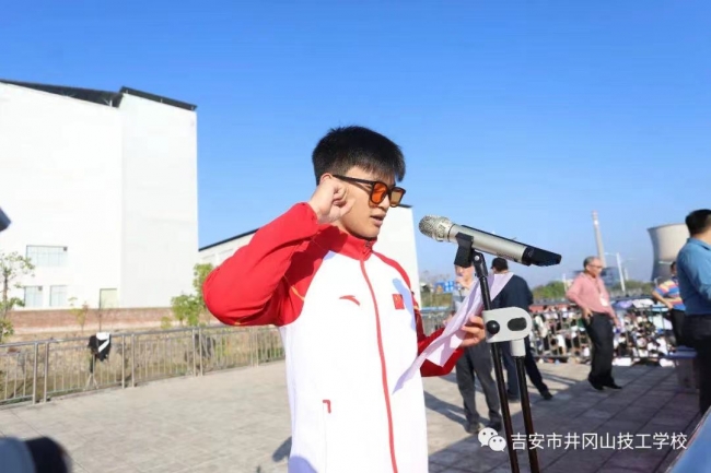 運(yùn)動(dòng)員代表張瑋文代表全體運(yùn)動(dòng)員宣誓