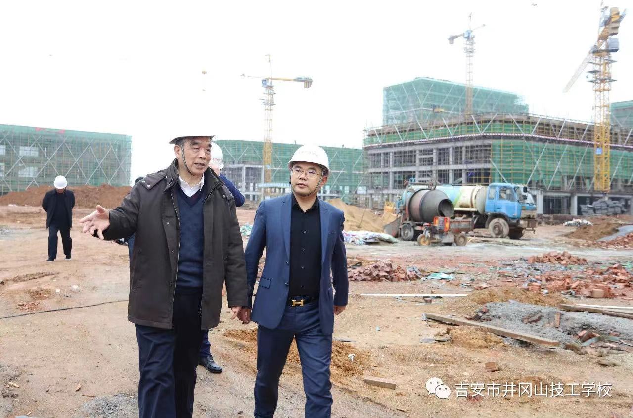 謝偉林陪同周金堂參觀吉安科技學(xué)校項(xiàng)目施工現(xiàn)場(chǎng)