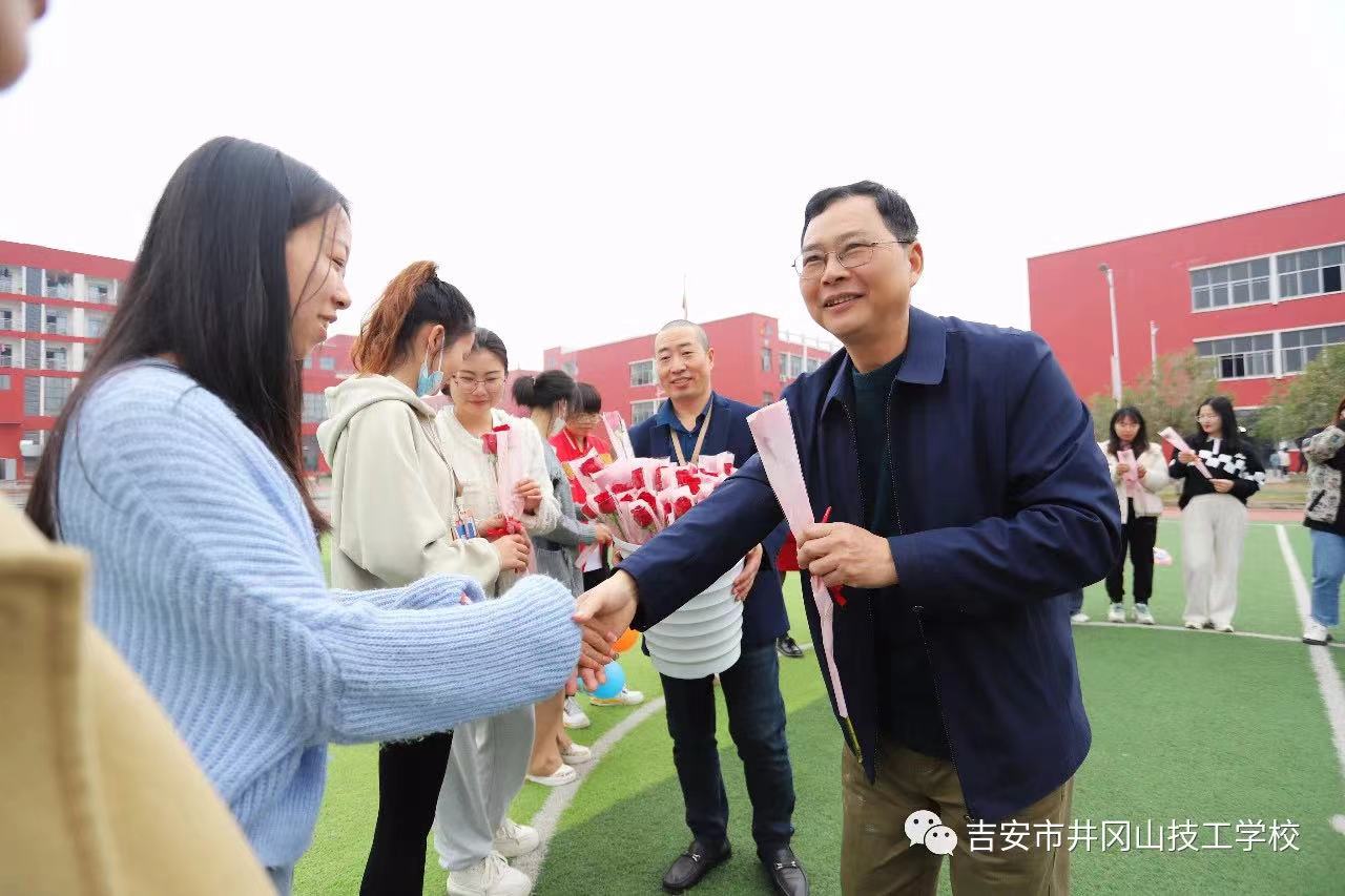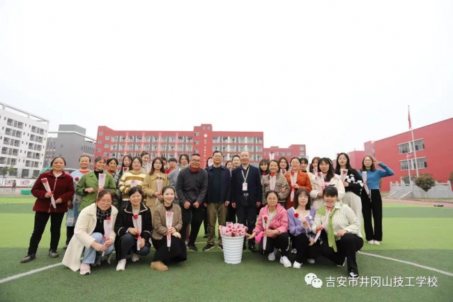 黨支部書記、副校長肖孟澤為女教職工們送上節(jié)日祝福和鮮花