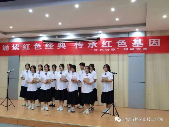 ????誦讀紅色經(jīng)典,賡續(xù)紅色血脈。學(xué)校經(jīng)常在雙休日、期末舉辦“紅色詩(shī)歌朗誦比賽”“紅色故事講述比賽”“紅色歌舞表演比賽”,每年分別舉辦一次迎新生晚會(huì)、迎新年晚會(huì)和“誦讀紅色經(jīng)典、傳承紅色基因”成果展示會(huì)。按照“以文化人、以技立身”的要求,開展傳統(tǒng)文化、制度文化、專業(yè)文化、企業(yè)文化等專題教育。校黨支部、團(tuán)委、工會(huì)分別組織師生赴校外紅色景區(qū)景點(diǎn)現(xiàn)場(chǎng)學(xué)習(xí)感悟。校園文化墻懸掛井岡山斗爭(zhēng)歷史故事和大國(guó)工匠榜樣。學(xué)校公眾號(hào)設(shè)“紅色基因代代傳”“紅歌大家唱”等專欄。