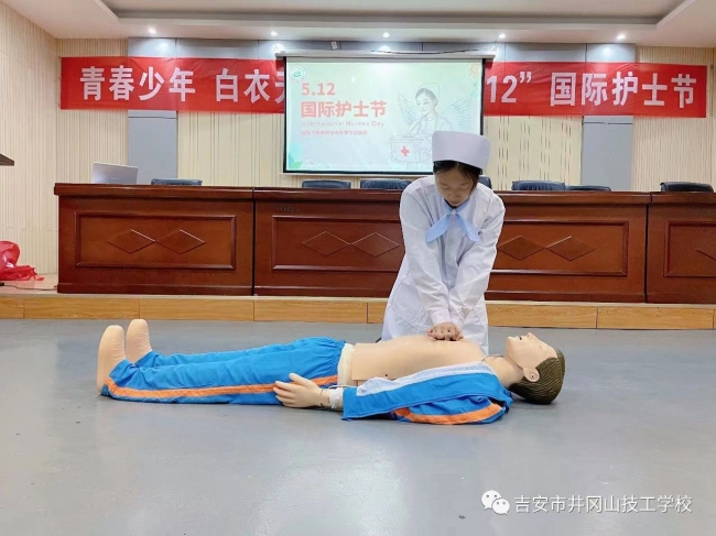 學(xué)生展示海姆立克急救術(shù)、血壓測(cè)量、心肺復(fù)蘇等專(zhuān)業(yè)技能