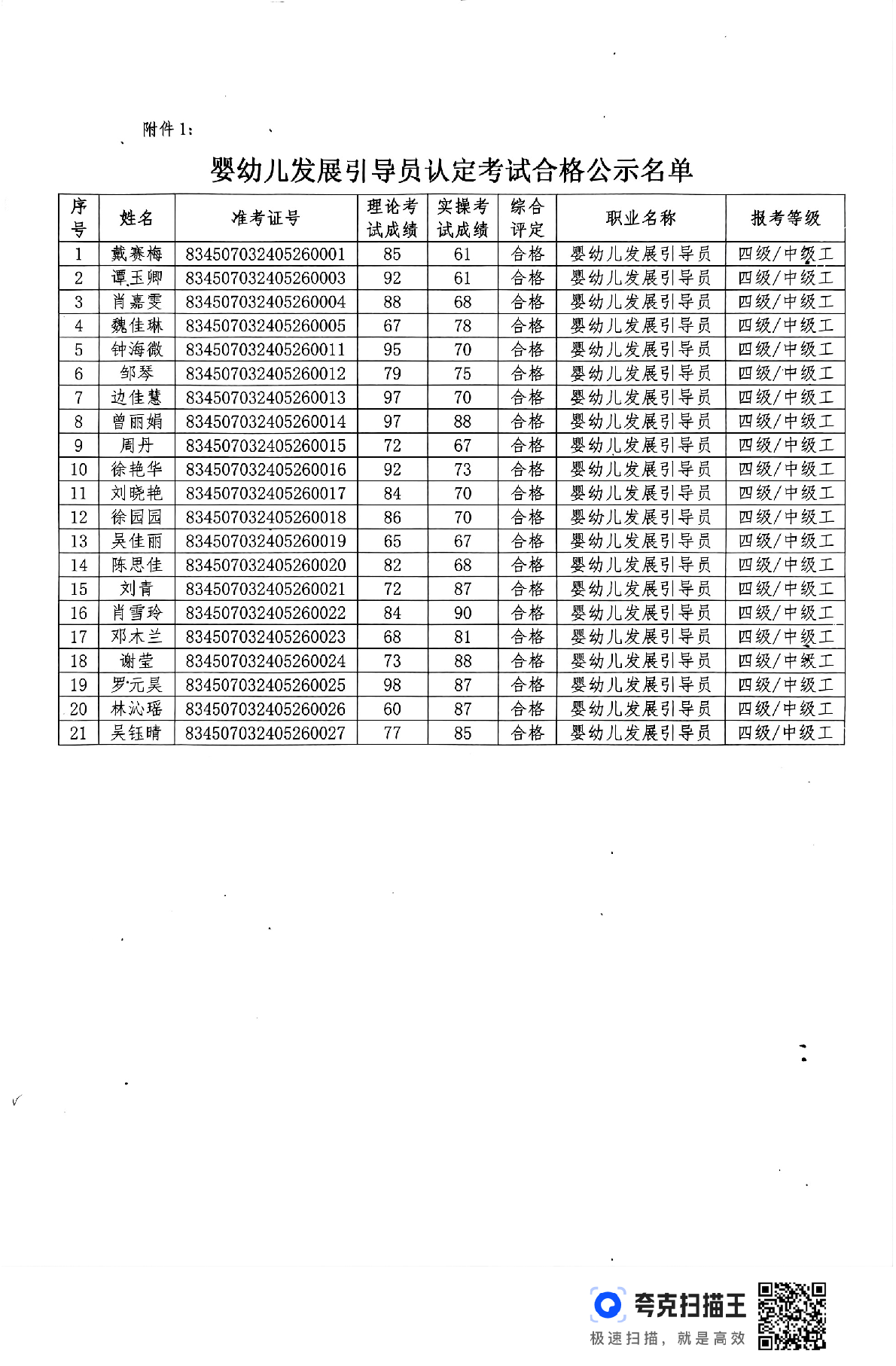 2024年吉安市井岡山技工學(xué)校嬰幼兒發(fā)展引導(dǎo)員認(rèn)定考試合格公示名單