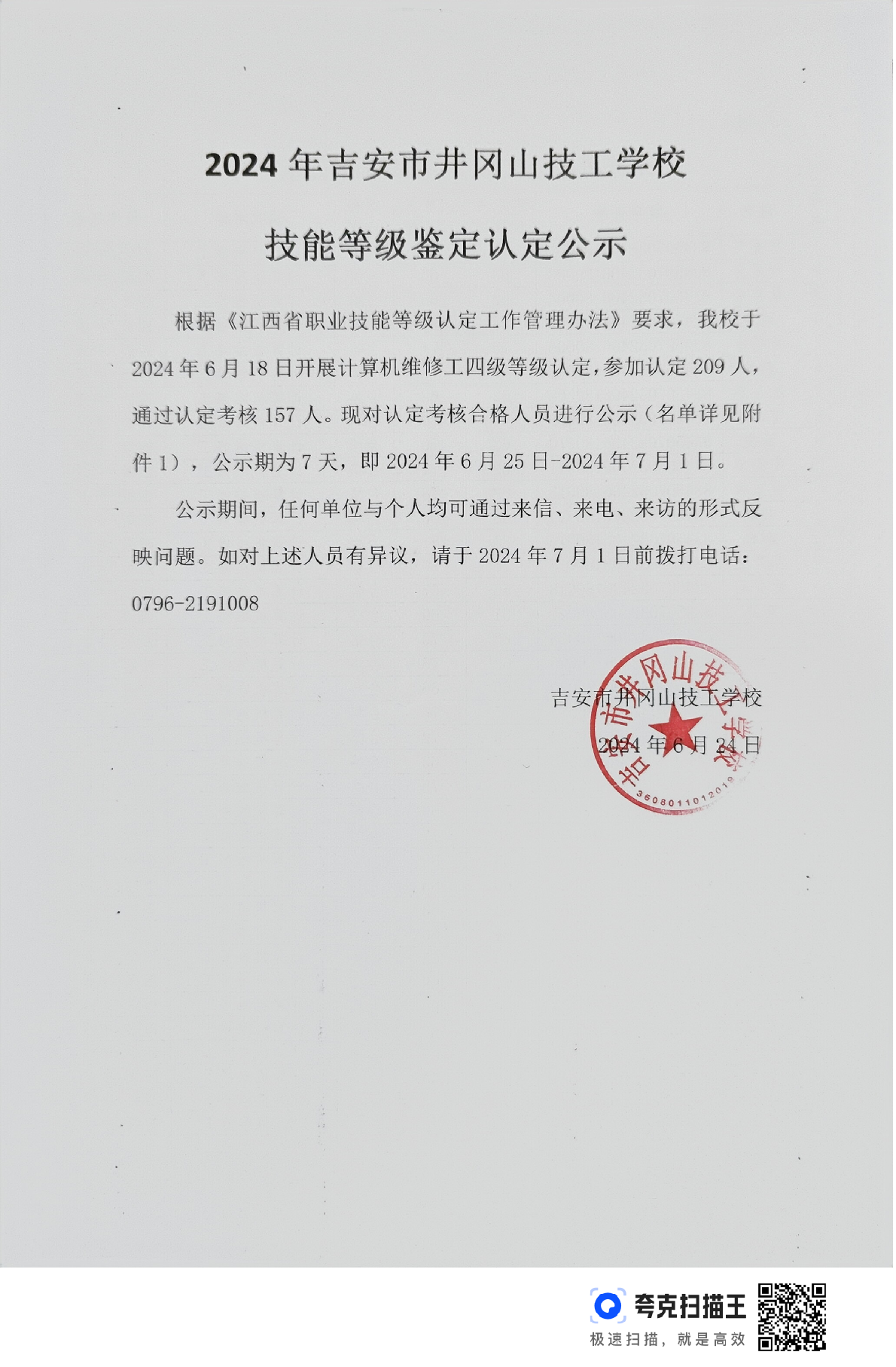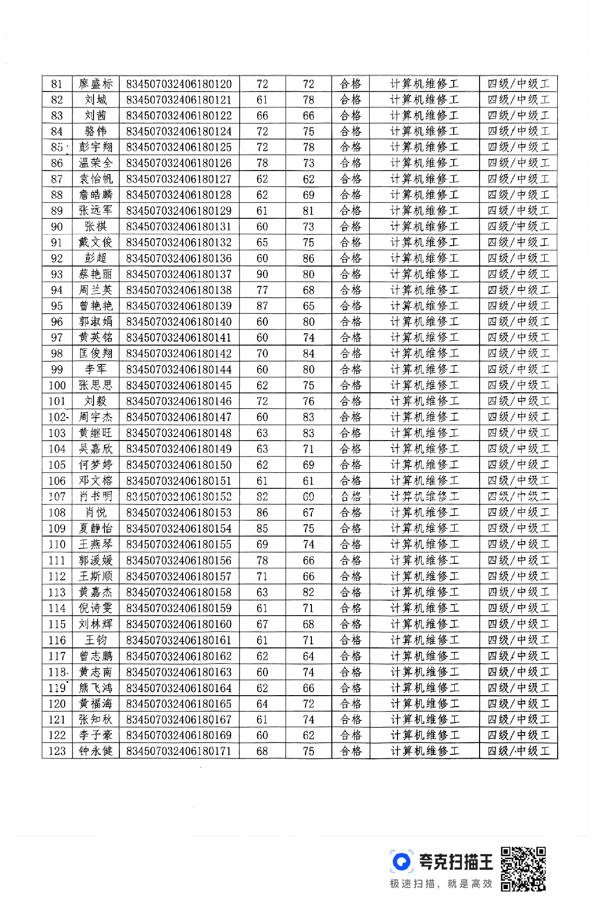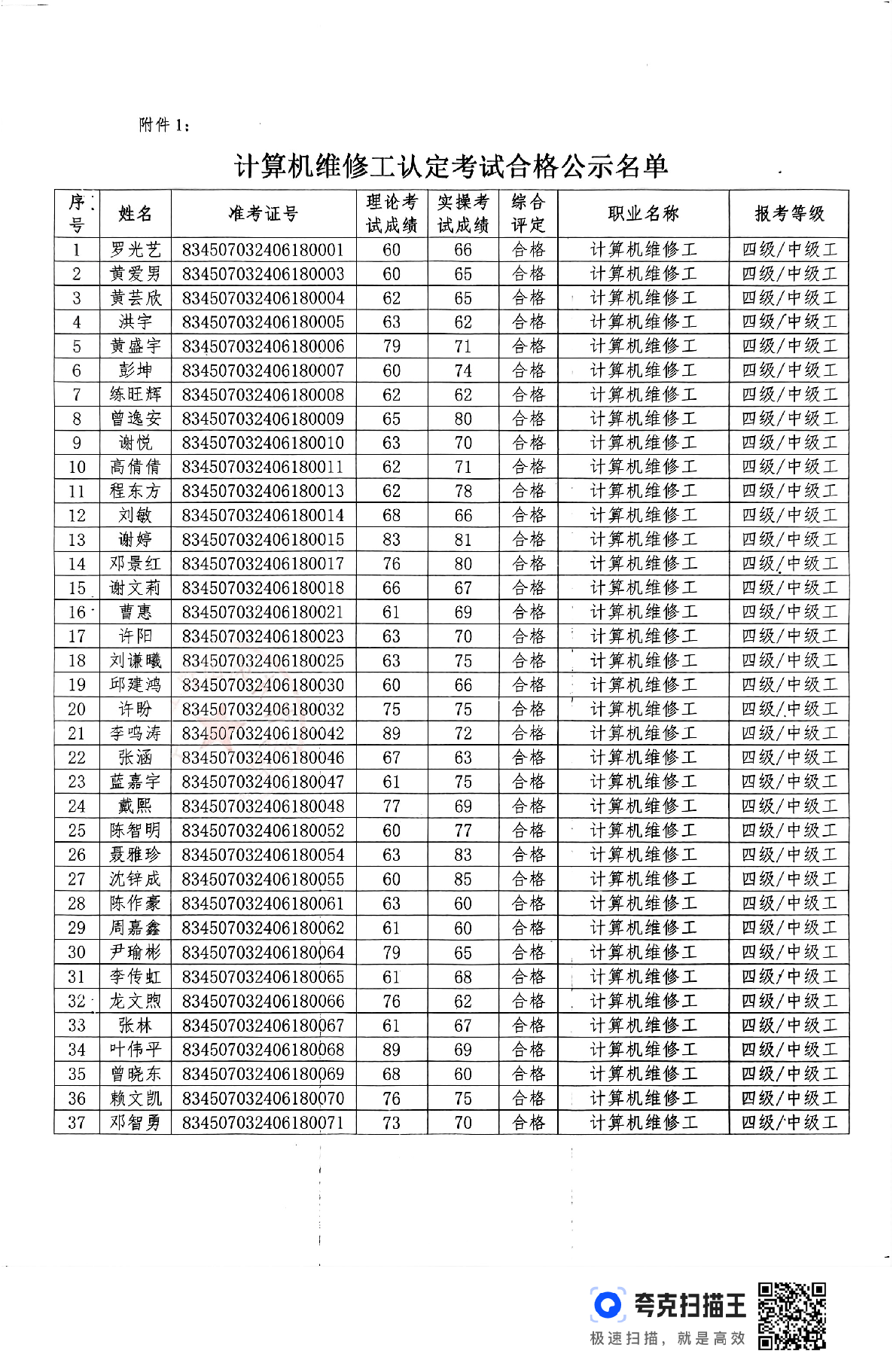 2024年吉安市井岡山技工學(xué)計(jì)算機(jī)維修工認(rèn)定合格人員公示名單