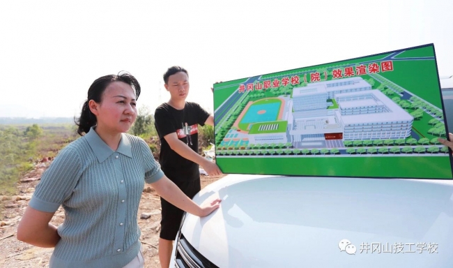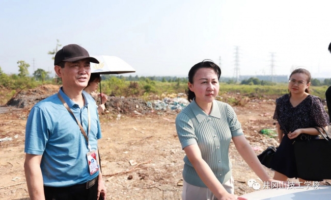 ????9月2日,井岡山經(jīng)開區(qū)三級調(diào)研員黃艷琴、區(qū)人社局副局長王丹丹等一行,在我校副校長肖孟澤陪同下,考察了東能教育集團新校區(qū)規(guī)劃地。