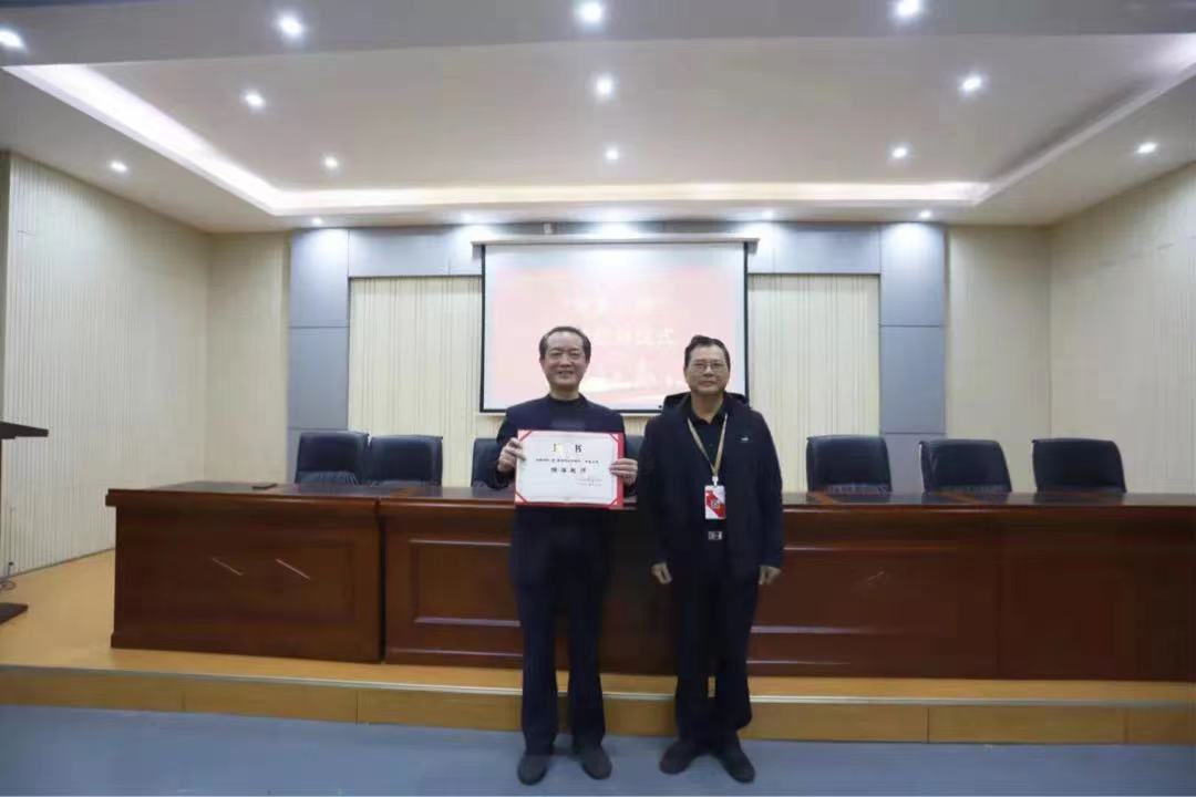 校領(lǐng)導為老教師頒發(fā)“青藍工程”導師聘書